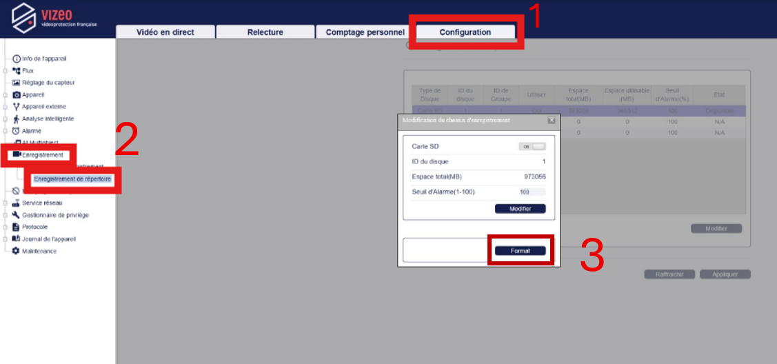 Les firmwares des caméras et enregistreurs Vizeo sont protégés et nécessitent un code d'accès.