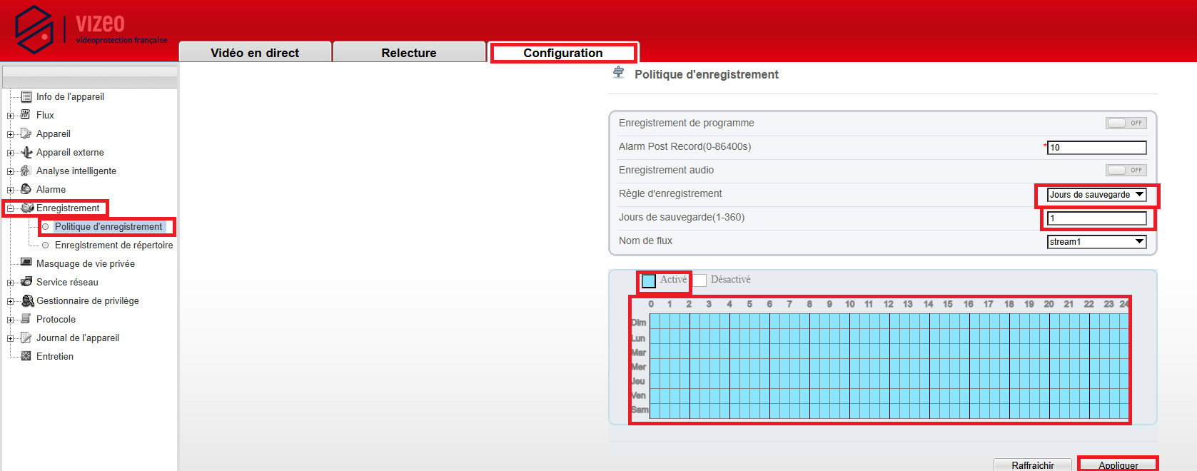 Comment définir le nombre de jours d’enregistrement sur la carte SD de ma camera