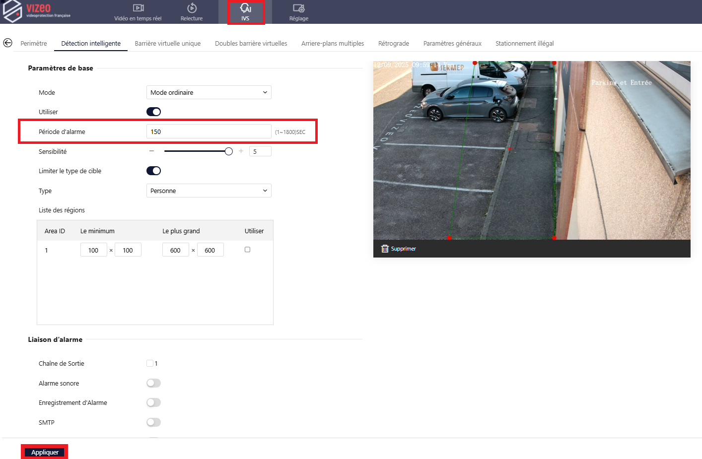 Reduire frequence annonces sonores et duree entre deux alarmes buzzer NVR